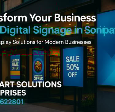 digital signage in Sonipat ,In today’s competitive marketplace, businesses in Sonipat are rapidly turning to digital signage to grab attention, improve communication, and enhance brand visibility. At Smart Solutions Enterprises, we deliver cutting-edge digital signage in Sonipat that helps you connect with your audience and grow your business effectively.